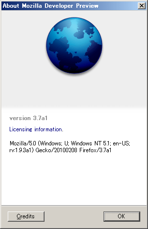 「MozillaDeveloperPreview」でした(Lorentzは3.6.x?)。