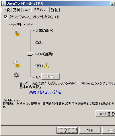 セキュリティに関する設定が[詳細]タブに混在している一方で