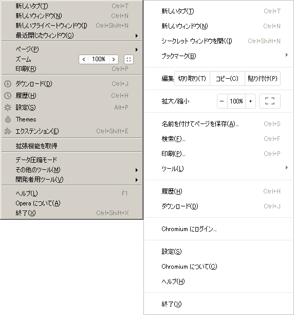 メニューもChromiumとほぼ同じです。