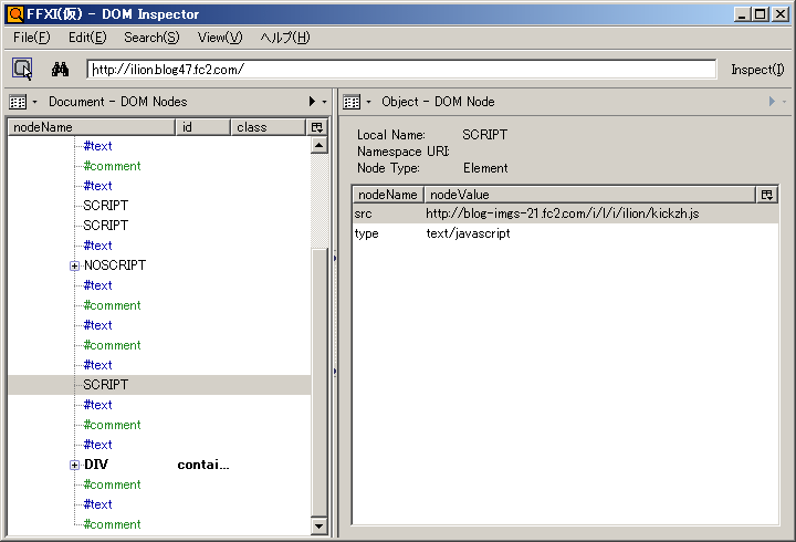 DOM Inspectorをインストールする。