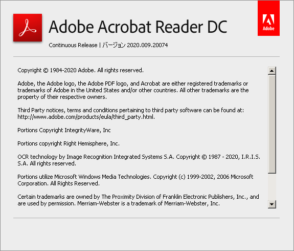 AcrobatReaderDC20.009.20074がリリースされました。